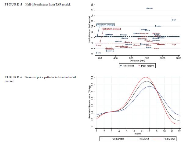 This study evaluates spatial market and storage efficiency in Turkish lemon markets using switching regime (SR) and threshold autoregression models. Our sample period includes a crucial regulatory reform aimed at improving the performance of fresh fruit and vegetable markets, shortening the production-consumption chain, and reducing retail prices. Using an extended SR model that allows for a gradual transition from the old to the new marketing regime, we test the hypothesis of no structural change in market efficiency and transaction costs in regional markets, including major consumption regions Istanbul, Ankara, and Izmir. Results indicate that the probability of efficient arbitrage regime is relatively higher in the post-reform period, albeit there is still room for improvement. Extended SR models show no significant change in average transaction costs, while threshold autoregression models suggest a slight increase. Furthermore, spatial prices adjust more quickly in the post-reform period, supporting relatively more efficient market functioning. While the regional markets seem to function more efficiently following the marketing reform, it has not led to permanent reductions in retail prices. Finally, our results from storage threshold autoregression models suggest that markets function reasonably efficiently, with no remarkable difference in storage behavior between the pre-reform and post-reform periods.